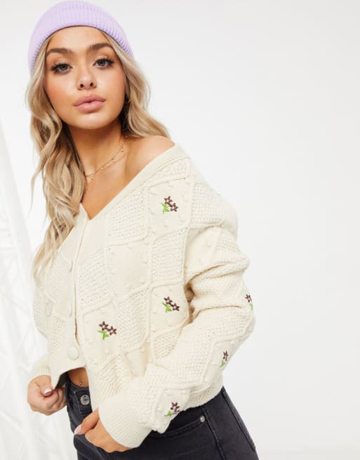 Stradivarius - Combi-set van gebreid hemdje en vest met borduursels in beige