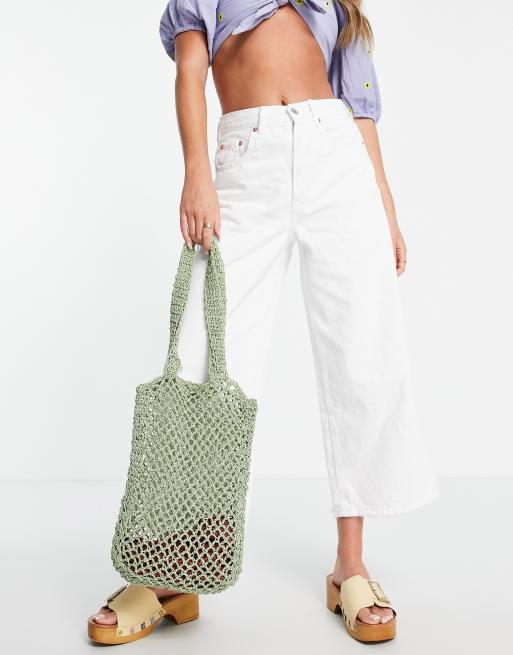 Stradivarius - Cropped denim jeans met onafgewerkte zoom in wit