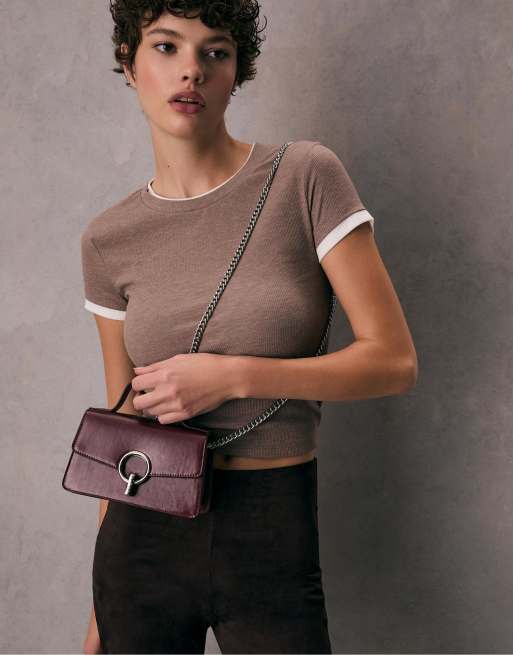 Stradivarius - Crossbody tas met ronde sluiting in bordeauxrood