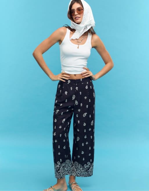 Stradivarius - Culotte van linnenmix met print in donkerblauw