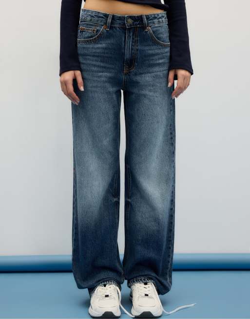 Stradivarius - D92 - Rechte jeans met wijde pijpen in rinse blauw denim