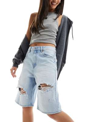 Stradivarius - Denim jort met scheuren in lichtblauw