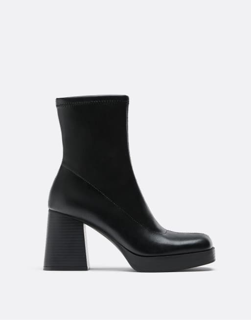 Stradivarius - Enkellaarzen met dikke hak in zwart