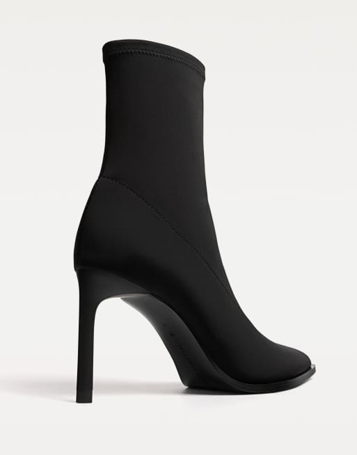 Stradivarius - Enkellaarzen van stof met stilettohak in zwart