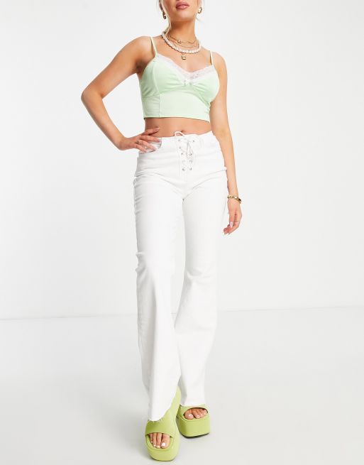 Stradivarius - Flare jeans met veter in wit