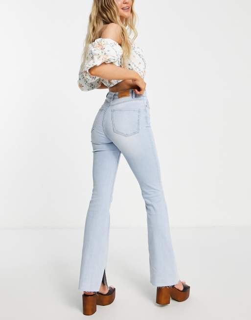 Stradivarius - Flared jeans met stretch en splitjes in lichtblauw