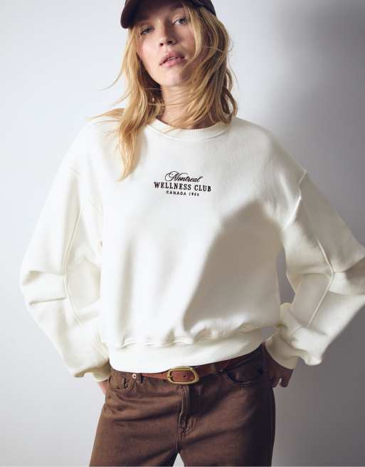 Stradivarius - Geborduurd sweatshirt met figuurnaden op de mouwen in ecru