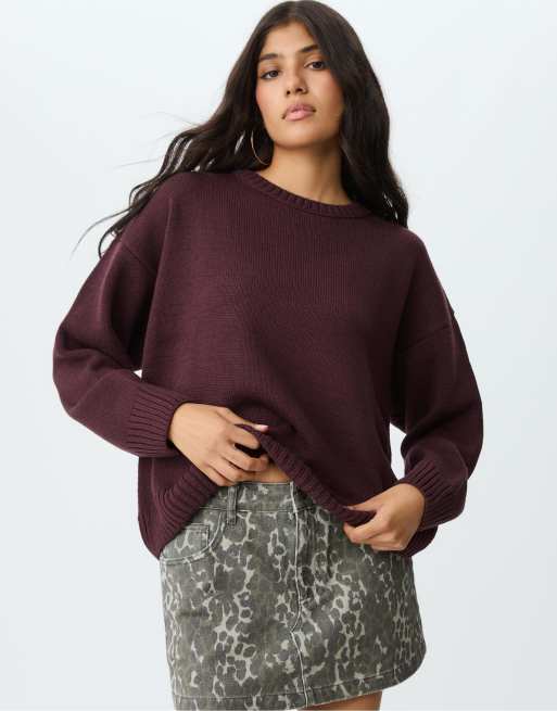 Stradivarius - Gebreide sweater met ronde hals in bordeauxrood