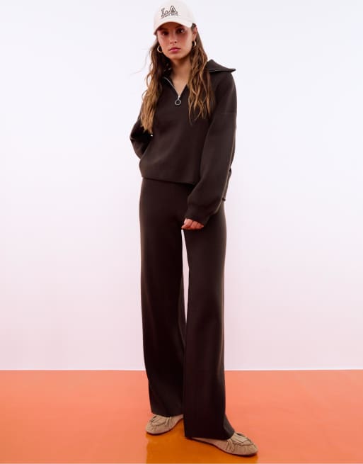 Stradivarius - Gebreide trui met rits in bruin
