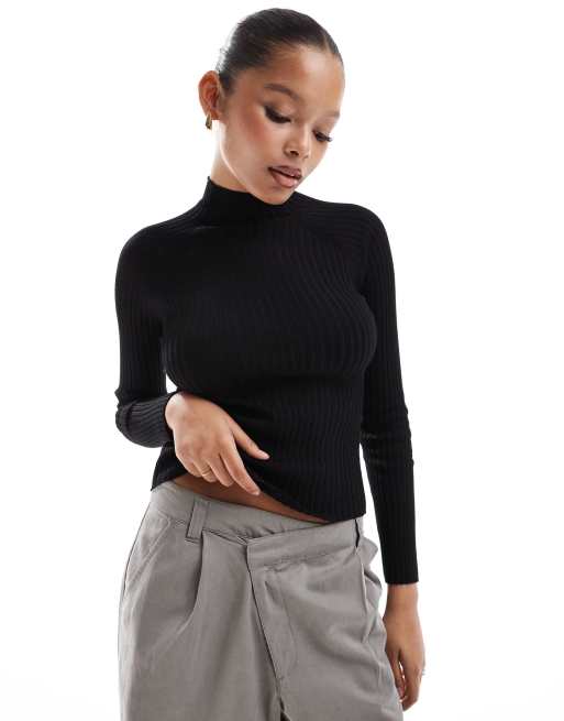 Stradivarius - Geribbelde trui in zwart