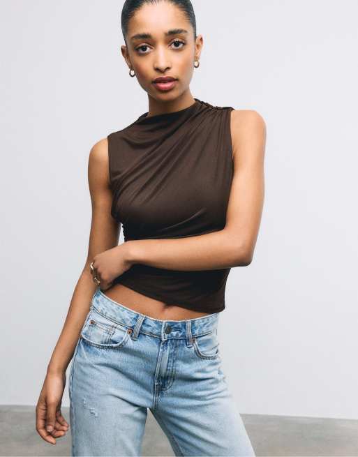 Stradivarius - Gerimpeld T-shirt met tule in bruin