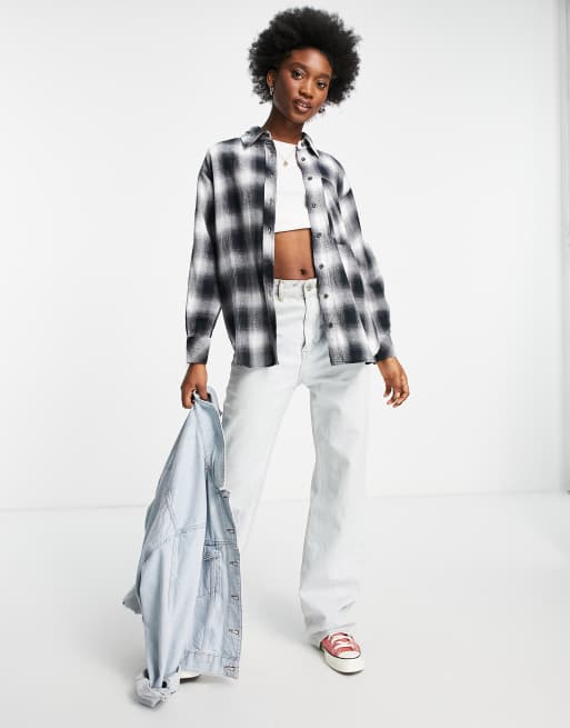 Stradivarius - Geruit overhemd in zwart-wit