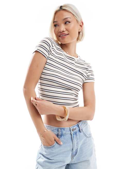 Stradivarius - Gestreept T-shirt met korte mouwen in wit
