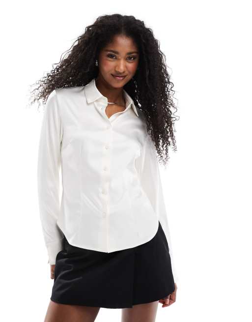 Stradivarius - Getailleerd satijnen overhemd in ecru