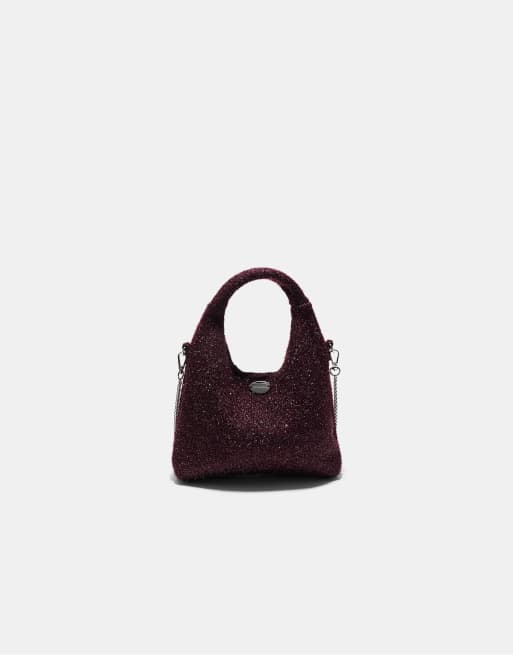 Stradivarius - Glinsterende handtas in bordeauxrood