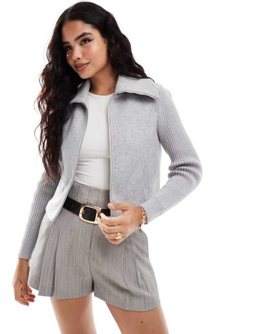 Stradivarius - Jack met geribbelde mouwen in grijs