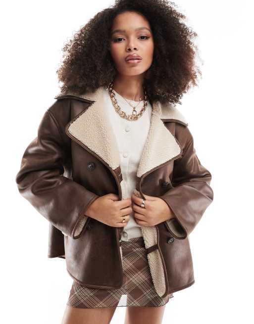 Stradivarius - Jack van imitatieleer met borgvoering in bruin