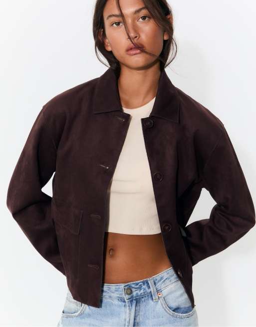 Stradivarius - Jack van imitatiesuède met zakken in bordeauxrood