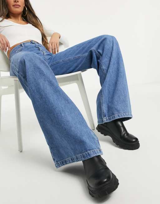 Stradivarius - Jaren 90 jeans met wijde pijpen in blauw