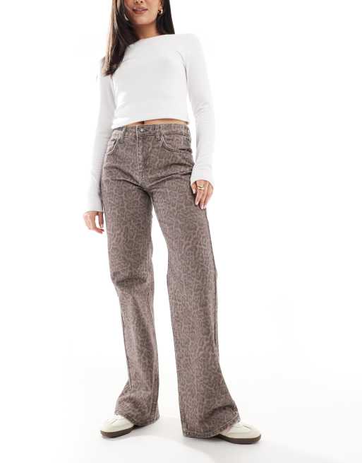 Stradivarius - Jeans met rechte pijpen in luipaardprint met lichte wassing