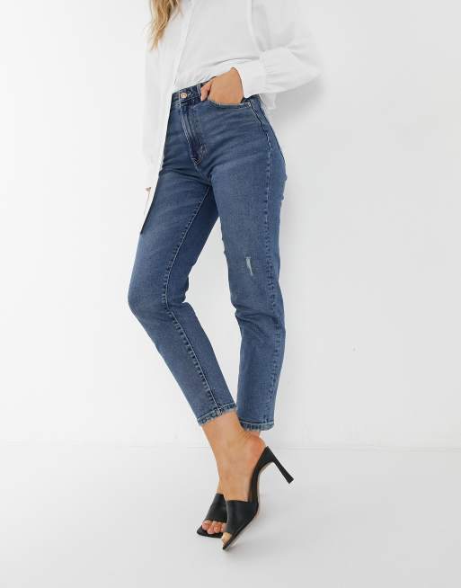 Stradivarius - Katoenen smalle mom jeans met stretch in blauw - MBLUE