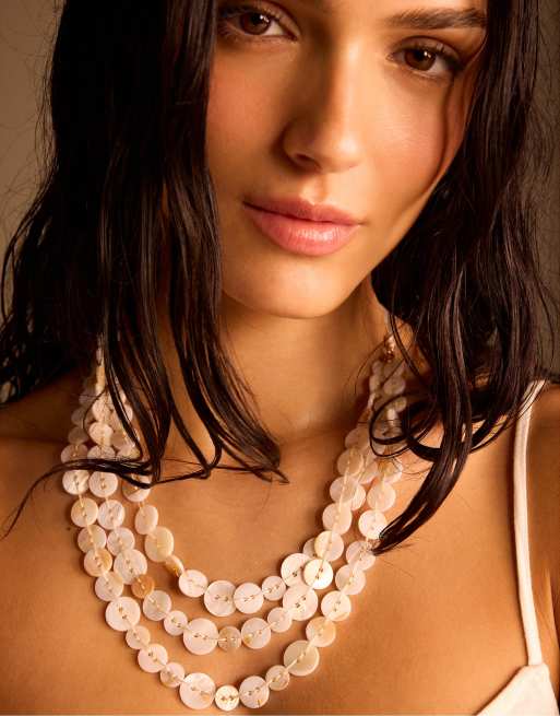 Stradivarius - Ketting met meerdere lagen en knopen in ecru