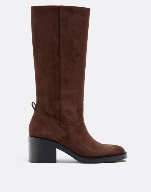 Stradivarius - Kniehoge laarzen met hak in bruin