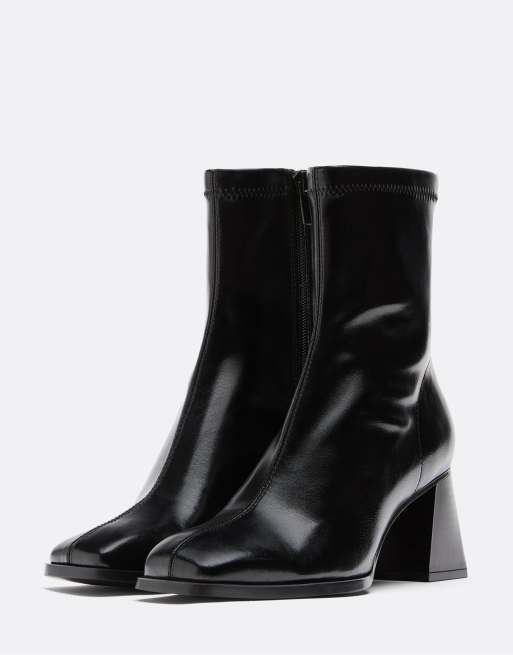 Stradivarius - Laarzen met brede pasvorm, halfhoge hak en schacht met stretch in zwart