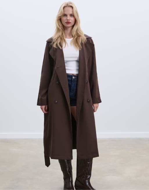 Stradivarius - Lange losvallende oversized trenchcoat in bruin