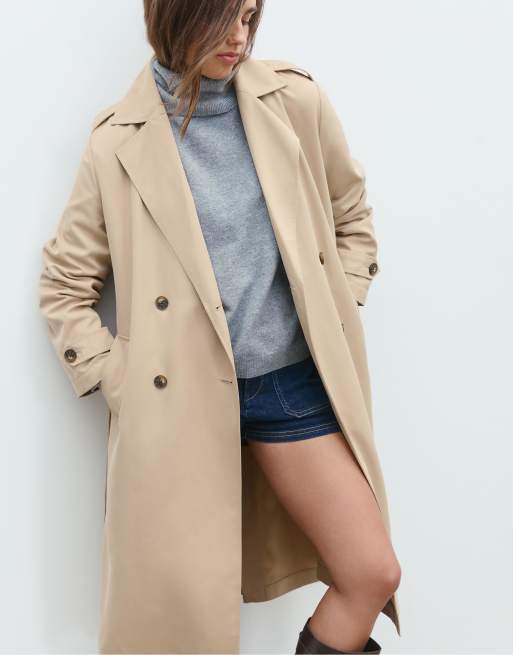 Stradivarius - Lange trenchcoat in stone