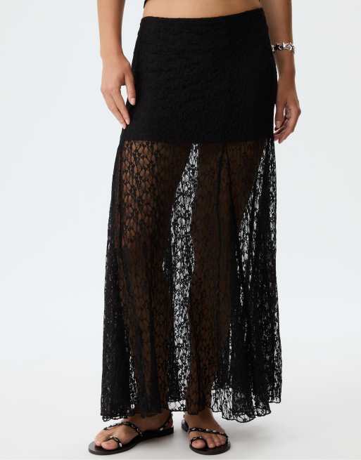 Stradivarius - Midirok van kant in zwart