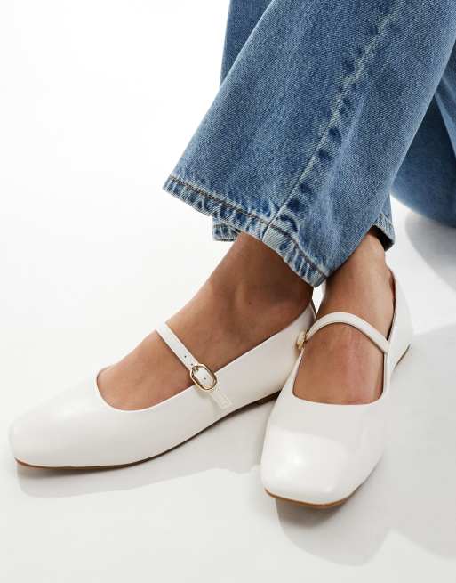 Stradivarius - Minimalistische ballerina's met brede pasvorm in gebroken wit