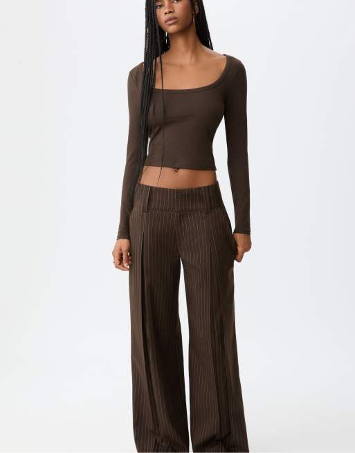 Stradivarius - Nette gestreepte broek met tailleband in bruin