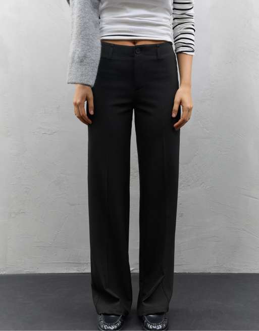 Stradivarius - Nette slim-fit broek met rechte pijpen in zwart