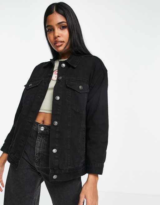 Stradivarius - Oversized denim jack in zwarte wassing