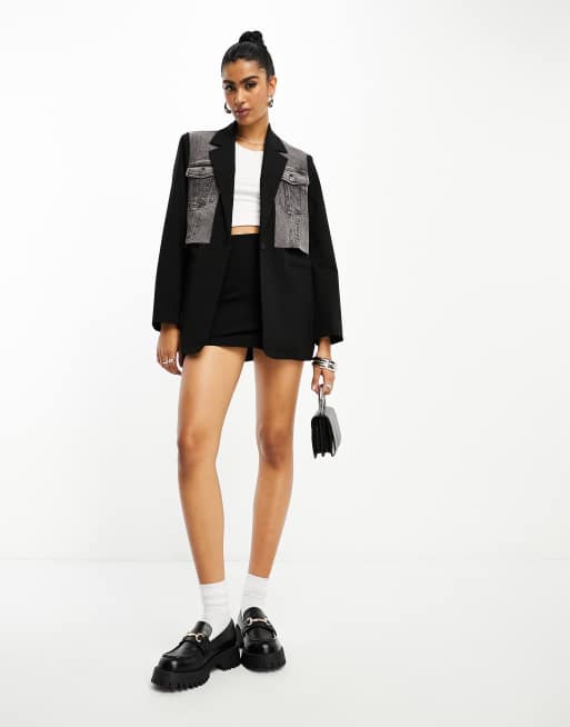 Stradivarius - Oversized elegante blazer met gesplitst denim in zwart