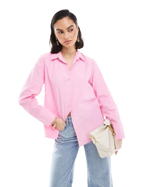Stradivarius - Oversized overhemd in roze