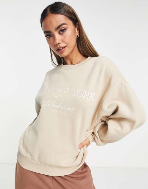 Stradivarius - Oversized sweatshirt met geborduurd motief in beige