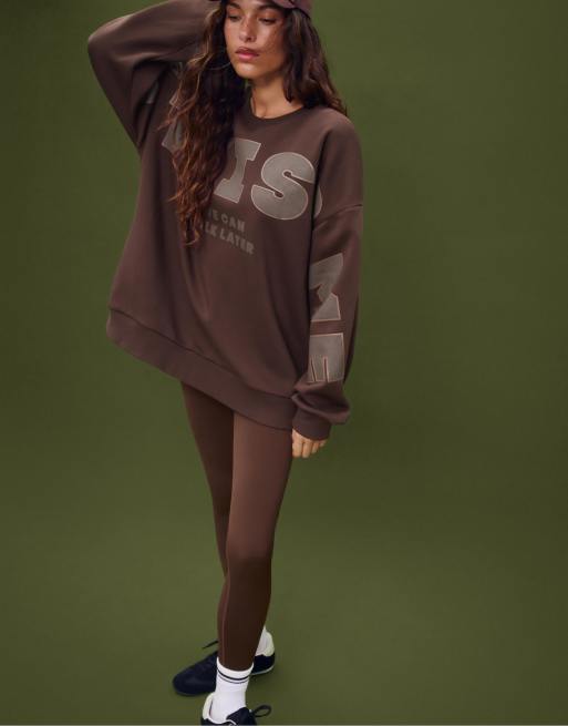 Stradivarius - Oversized sweatshirt met 'Smile' print in bruin