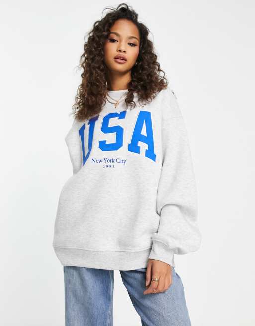 Stradivarius - Oversized sweatshirt met 'USA' in gemêleerd grijs