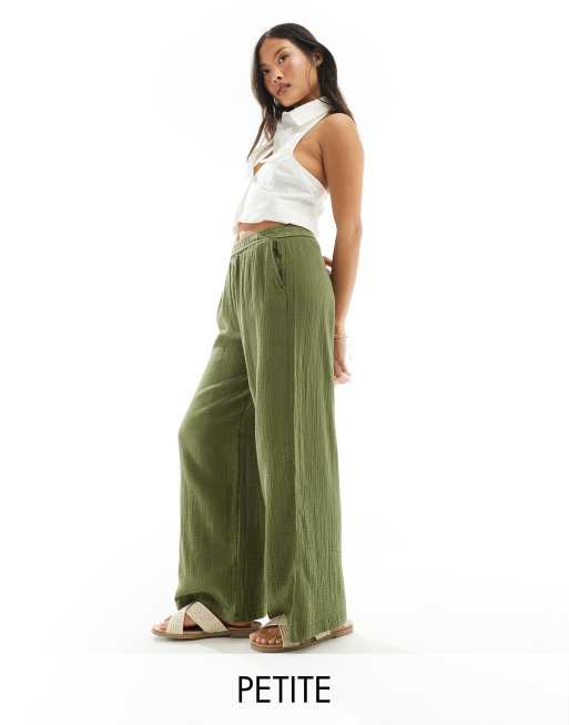 Stradivarius Petite - Broek met elastische taille en textuur in kaki