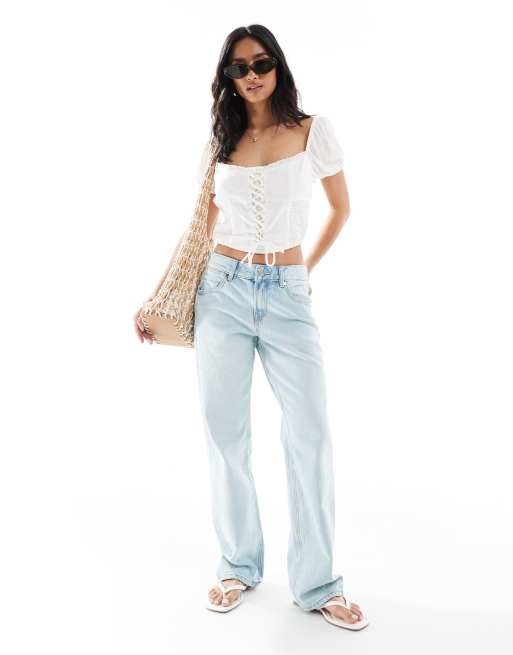 Stradivarius Petite - D03 - Jeans met rechte pijpen en lage taille in lichtblauwe wassing
