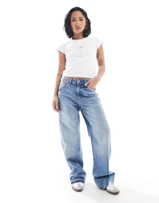 Stradivarius Petite - D92 - Jeans met rechte pijpen in medium wassing