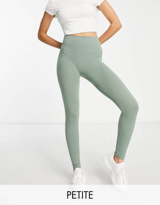 Stradivarius Petite - Naadloze geribbelde legging in olijfgroen