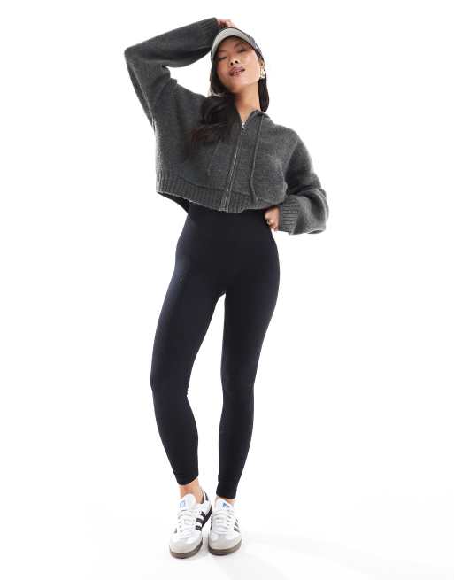 Stradivarius Petite - Naadloze geribbelde legging in zwart