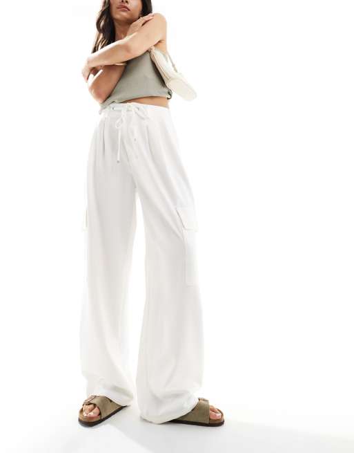 Stradivarius - Pull-on broek met zak in ecru
