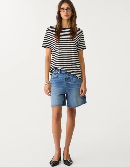 Stradivarius - Regular-fit gestreept T-shirt met ronde hals in zwart