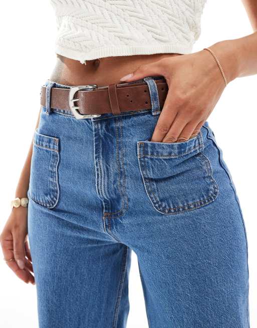 Stradivarius - Riem van imitatiesuède met studs in bruin