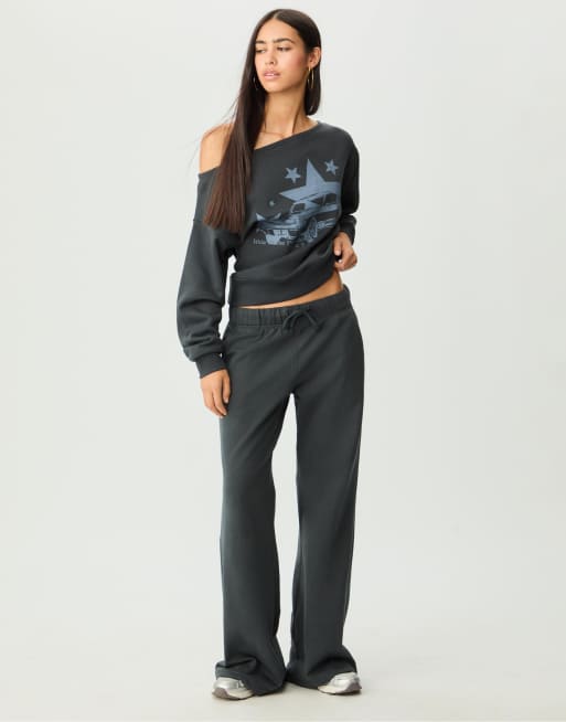 Stradivarius - Ruimvallende flare-broek met trekkoorden in donkergrijs
