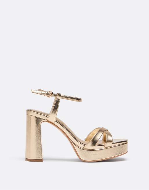 Stradivarius - Sandalen met plateauzool en blokhak in goud